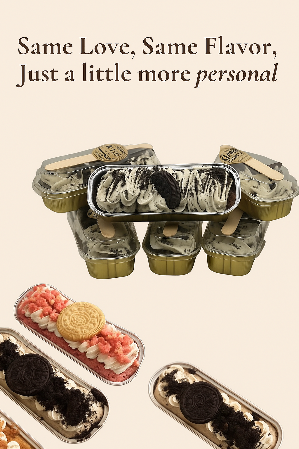 Each mini cake is made with love and full of flavor- just like our full -size cakes. Bakes in individual tin pans for the perfect single- serving treat. Moist and full of flavor, each cake is a charming way to enjoy that homemade taste, just for you. Whether you’re building a dessert table, gifting something sweet, or simply indulging in a moment to yourself, Our mini cake make every moment feel a little more special.